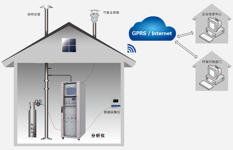 数据采集和传输设备:主要由一体式工控机、数据处理软件组成,实现监测数据的实时采集、存储、计算,并通过网络传输数据至环保监控平台。