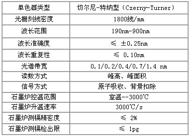 表3.AAS6000电子层吸引光谱分析仪大部分高技术基本参数