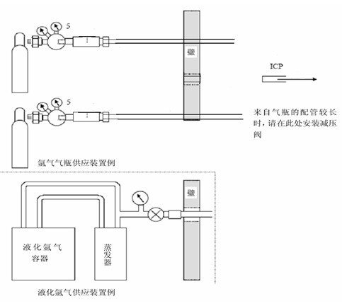 氩气瓶到仪器的距离应小于 5m,配管如下图所示,要注意氩气瓶的妥善放置,防止倾倒