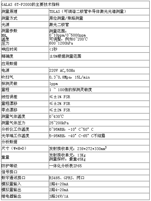 激光在线气体分析仪(氨气)GALAS 6T-P2000选取以基于可调谐二极管(TDLAS)激光吸收光谱技术的激光在线气体分析仪采用原位探杆式激光分析法,测量氨逃逸量。