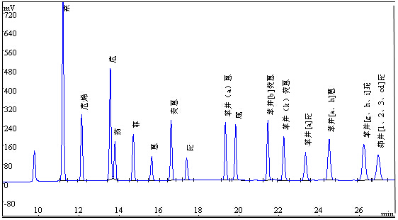 图1.16种多环芳烃标准的稀硫酸色谱图