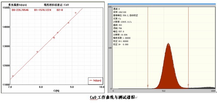 每个金属的元素的任务线条与试验谱图,这其中B0为线条节距;B1:为线条斜率;在试验谱该图有金属的元素的试验数据信息:计算率,抽样的时间,判断率等。