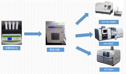天瑞仪器采用微波消解方式对食用油样品进行消解,并采用电感耦合等离子体质谱仪ICP-MS2000E、原子吸收分光光度仪AAS9000和原子荧光光谱仪AFS200,可以同时测定植物油中As、Pb、Cd、Hg等重金属元素含量,适用于不同生产工艺及各种食用油样品中重金属元素的测定。另外,采用电感耦合等离子体质谱法,还可以对食用油运输容器中微量或痕量元素的迁移量进行测试分析,以及与色谱连用进行元素形态分析。