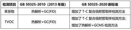 表1.GB 50325-2020的主要检测方法变化