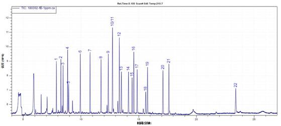 🌊 测定方式:TIC(FULL SCAN)定性(扫描范围:45-450amu),SIM模式定量。