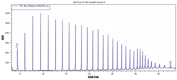 ♛ 土壤和沉积物中的石油烃(C10-C40),经提取、净化、浓缩、定容后,用带氢火焰离子化检测器(FID)的气相色谱仪检测,根据保留时间窗定性,外标法定量。根据石油烃(C10-C40)保留时间窗对目标化合物进行定性,即从正癸烷(包含)出峰开始时开始,到正四十烷(包含)出峰结束时进行积分,计算石油烃(C10-C40)的总峰面积。