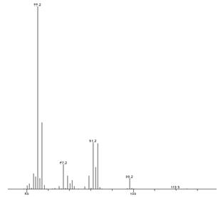 ꦅ 甜蜜素的主要衍生物环己醇亚硝酸酯作为定性和定量,如图1。保留时间8.511min.定性离子(m/z)为55,81,83。定量离子为55。质谱图见图2.